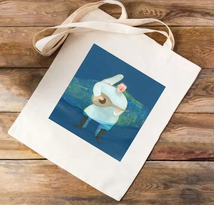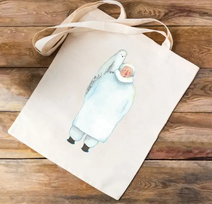 Un tote bag glacé au design unique inspiré de Rajoul Al-Jalîd et  L’Homme de Glace.