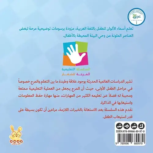 Rouge, bleu, vert… et si apprendre les couleurs devenait une aventure joyeuse? Avec des illustrations amusantes inspirées de l’environnement quotidien des enfants, ce livre leur enseigne les noms des couleurs en arabe. Ludique et visuel, il stimule à la fois l’apprentissage du vocabulaire et l’éveil sensoriel.